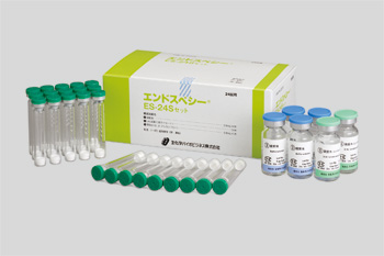 エンドスペシーES-24Sセットは、比色法によるエンドトキシン定量のための試薬セットで、Limulus polyphemusから調製したライセートと発色合成基質(Boc-Leu-Gly-Arg-pNA)を構成成分としたLAL試薬、LAL試薬溶解用の緩衝液および蒸留水(Et, β-グルカンフリー)より構成されています。